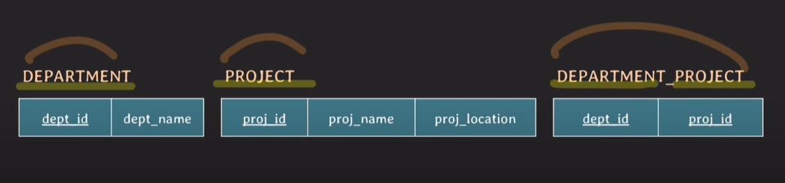 부서, 프로젝트 , 부서_프로젝트 연결해주는 3개 테이블로