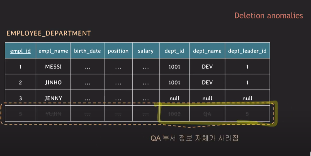 - 하나의 정보를 삭제할 때 연관된 다른 유효한 정보도 함께 삭제되는 문제