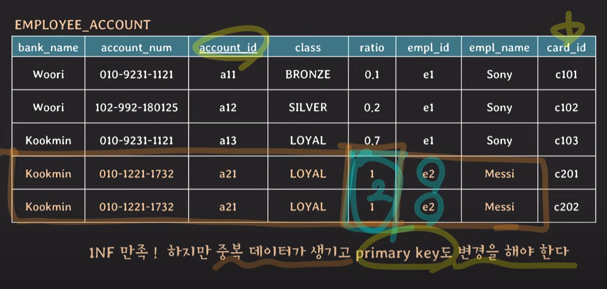 즉 non-prime 속성 전체는 account_id만 있더도 되는 partial - dendency이다 - 정규화 전: