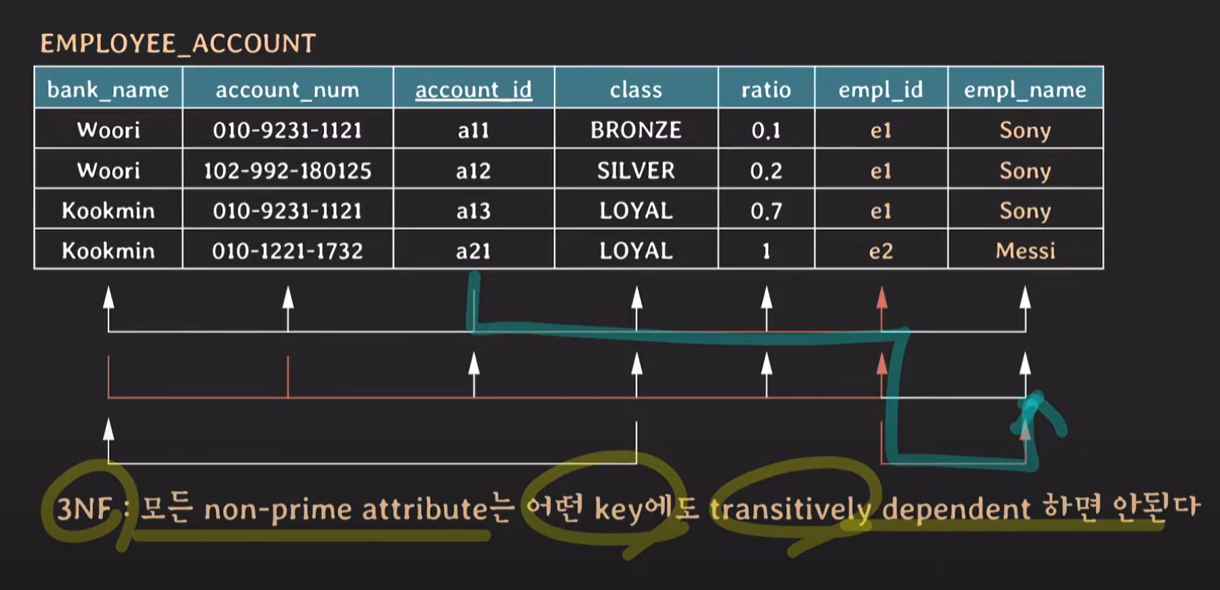 하지만!!!!! bank_name은 {bank_name , account_num} 의 일부분(부분 집합)이라 조건에 만족하지 않아. 이행적 종속이 아님!!!xxxxx