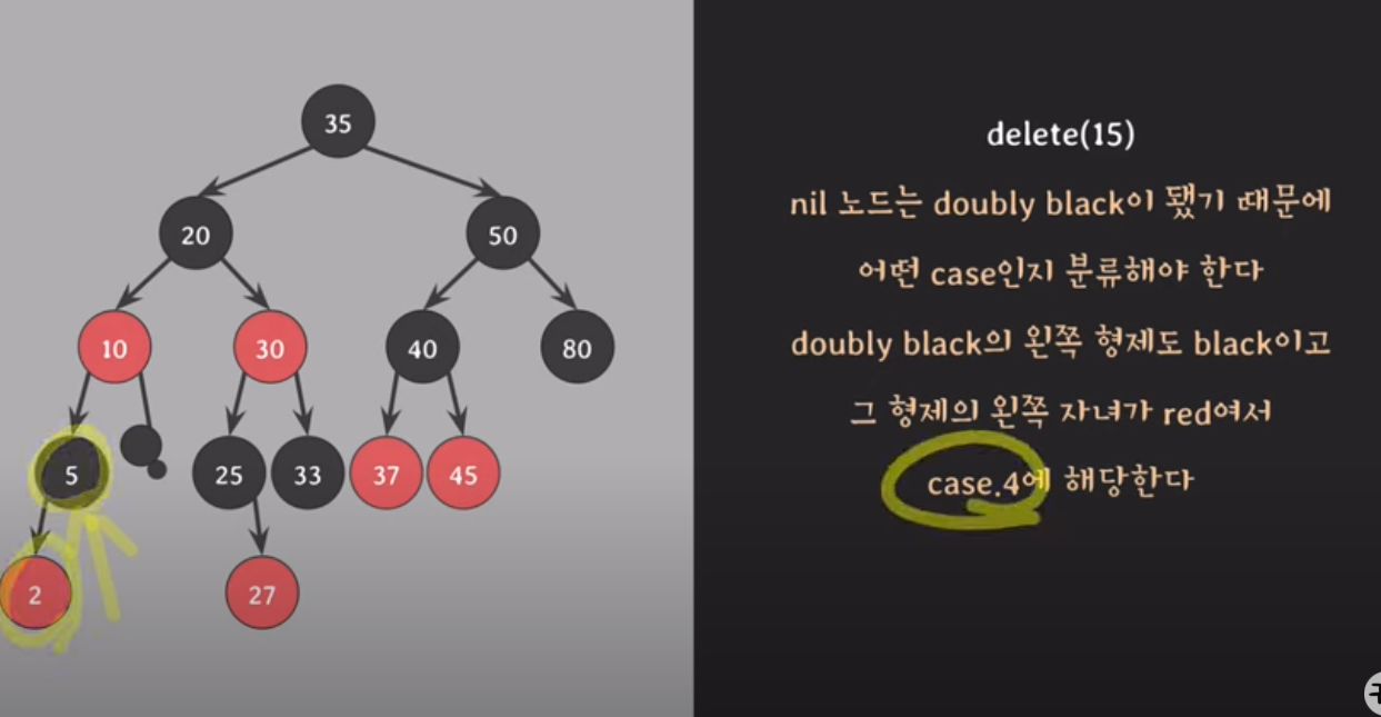 - Doubly Black 상태면 → Case 1~4에 따라 처리