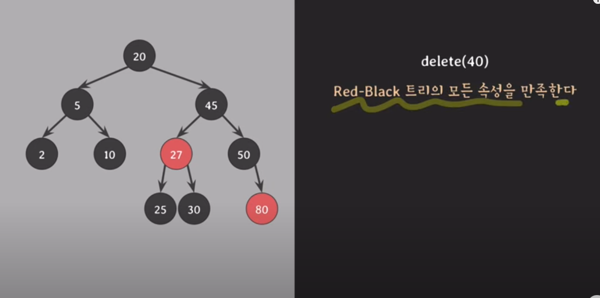 - 삭제 전, 레드-블랙 트리의 속성은 모두 만족된 상태